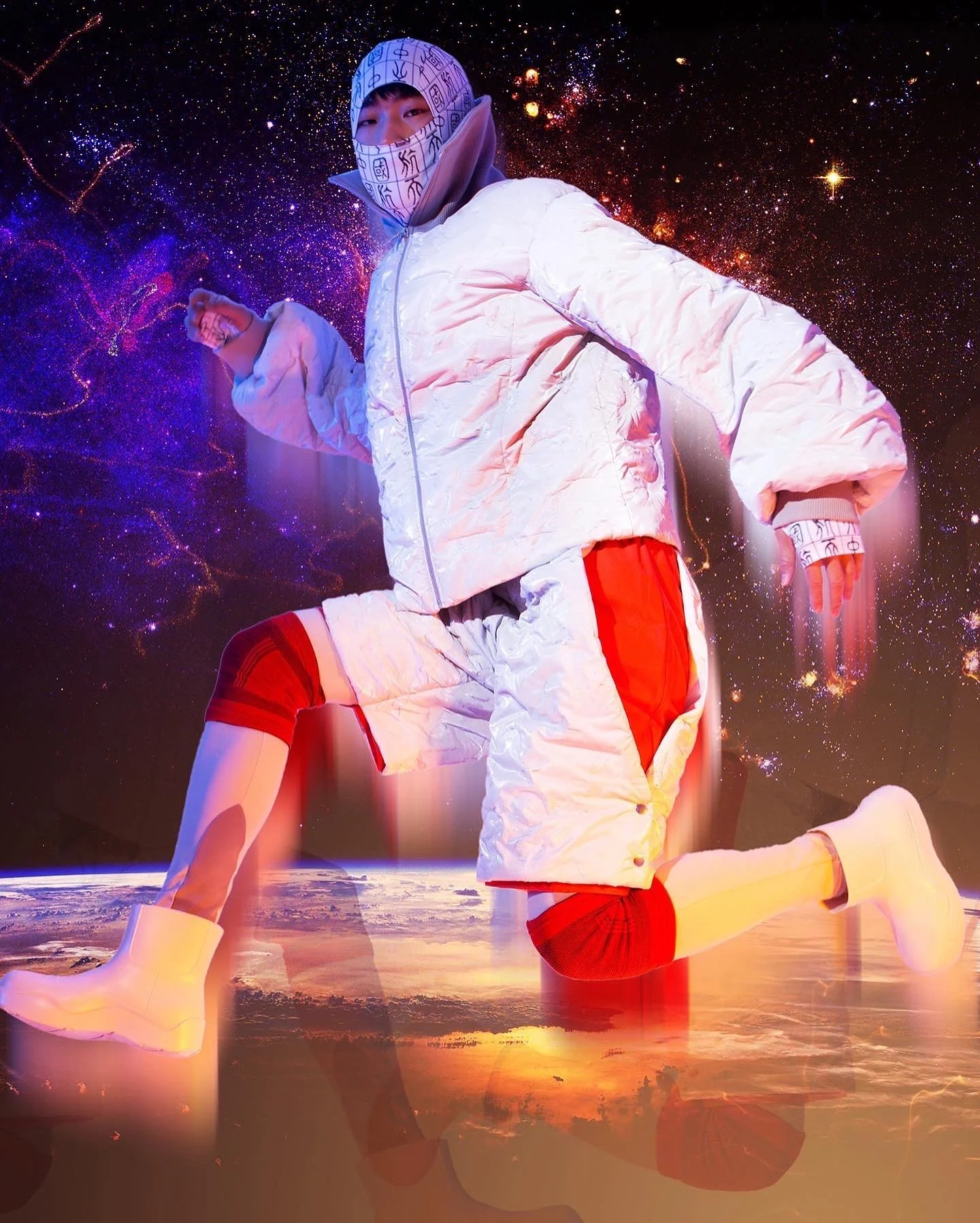 这次我设计的服装是在对中国航天致敬,对宇宙的宏大表达敬畏之心。整体设计有点像航天服,我把它命名为《太空维系者》,我认为这在一定程度上也是对未来设计的探讨。在我的设计理念中,认为未来的服装设计是建立在消费人群的需求之上,既能满足消费者的需求,同时也可以做到引导消费者消费。