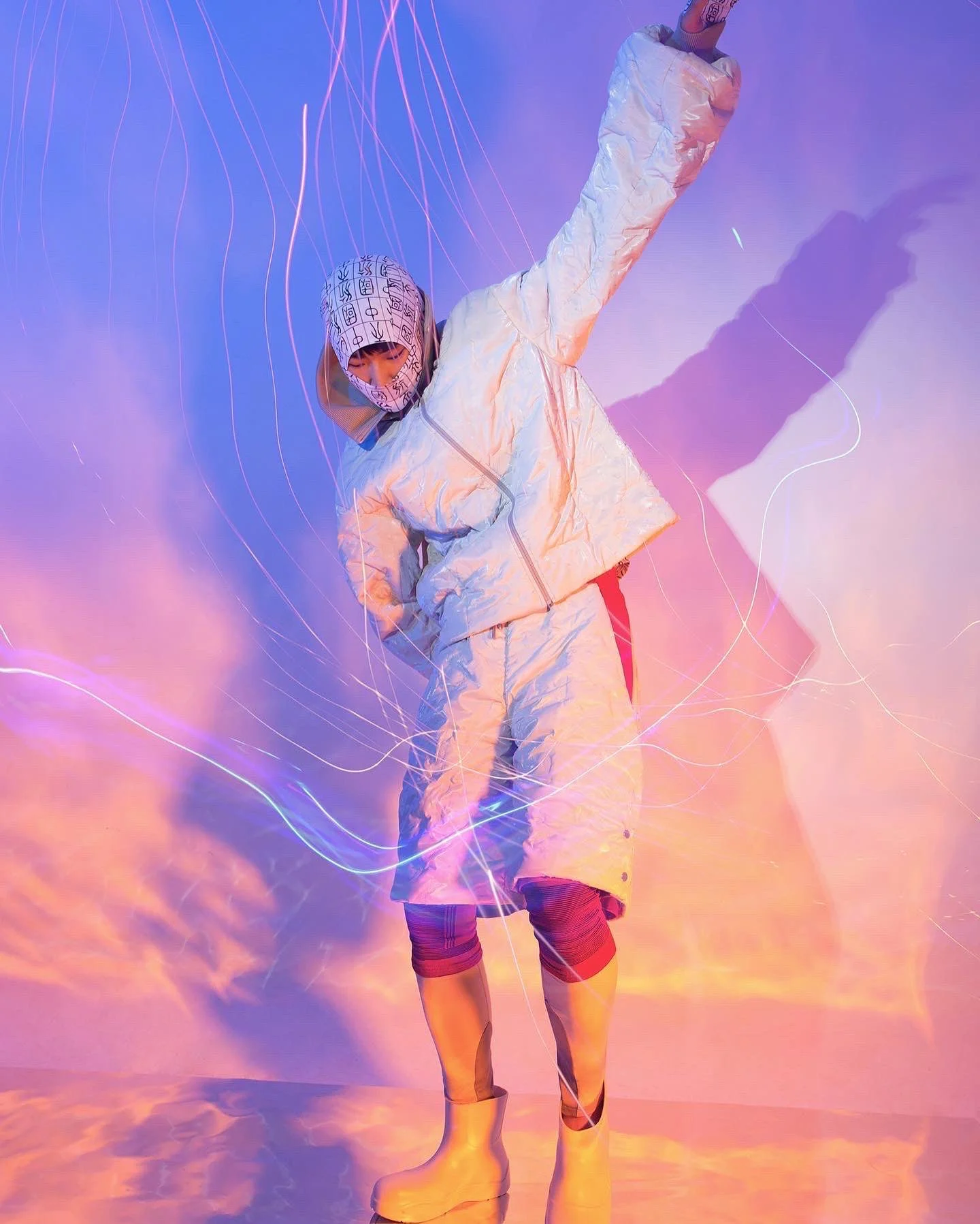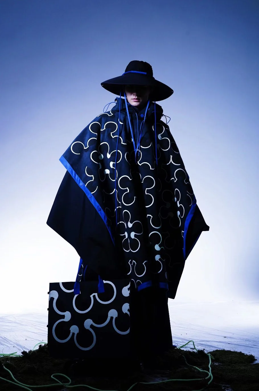 “元”给我的感受是包容性很强,未来感十足,可以更加自由和开放的表达自己的设计想法和风格。《答卷人》这套服装将图案视作服装的重要创新点,归纳总结其应用原则,通过再设计的手法使其表现形式更具多元化,并结合艺术表达进行创新性设计,将功能美学与艺术创新相结合,力求为图案在轻户外服装设计中的应用提供设计思路和创新参考。