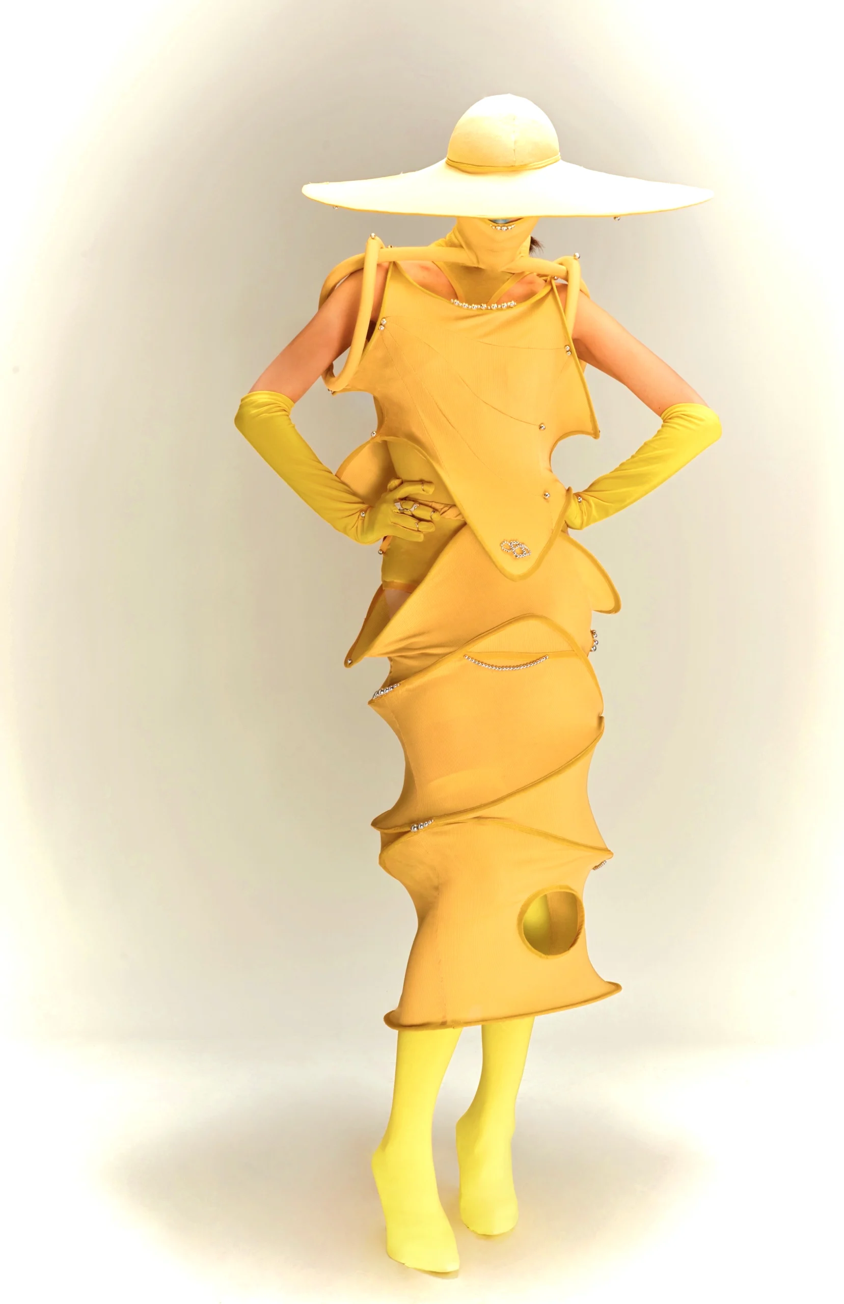 在禅的观念里,个体生命与宇宙万物之间圆融互通,我的服装正是通过个体展现出生命与宇宙的紧密结合。我的设计灵感来源于土星与其探测仪 Cassini 之间的空间关系,从而联想到身体和服装形成的一个空间整体。我没有选择常规的服装手法将作品做成特别先锋和科技感十足的服装,而是赋予其浪漫色彩。整个设计手法克制温柔,保留了东方的浪漫情怀,吸收科技所带来的浪漫与巧思,很符合数字服装的设计。