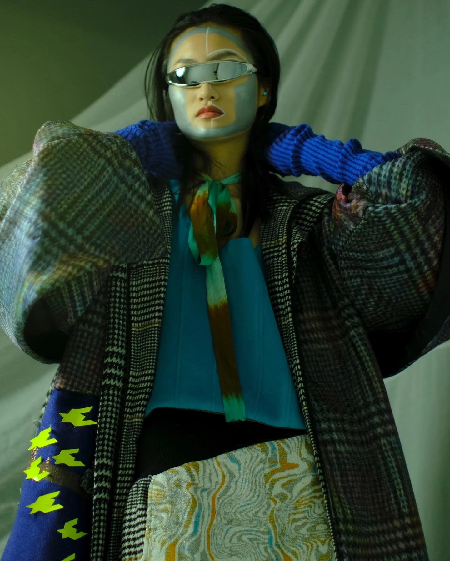 我的设计灵感来源于对当下人与自然环境之间关系的思索。回归到系列设计上,重点探寻现代流行时尚与绿色设计的联系,围绕创新成⾐进⾏展开,通过生物科技与波普艺术的结合形成一种新的视觉元素,在设计中融入未来感的表现形式和丰富的迷幻色彩变化,这也是《C-System》对自然与生命的敬畏以及对未来美好生活无限憧憬的表达。